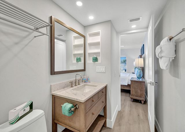 Marina Villa 806 features a king bed and en-suite bathroom in the primary, along with marina views directly from your bedside window, while the guest bedroom features two twin beds and a hallway tub/shower combo. If you’re not enjoying a day out on the famous white beaches of Captiva, go enjoy a dip in the community pool, picnic with the family at the community BBQ grills, or bike around the beautiful island!
